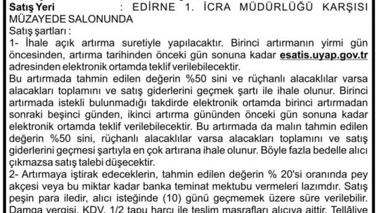 2013/7135 Esas satış ilanı