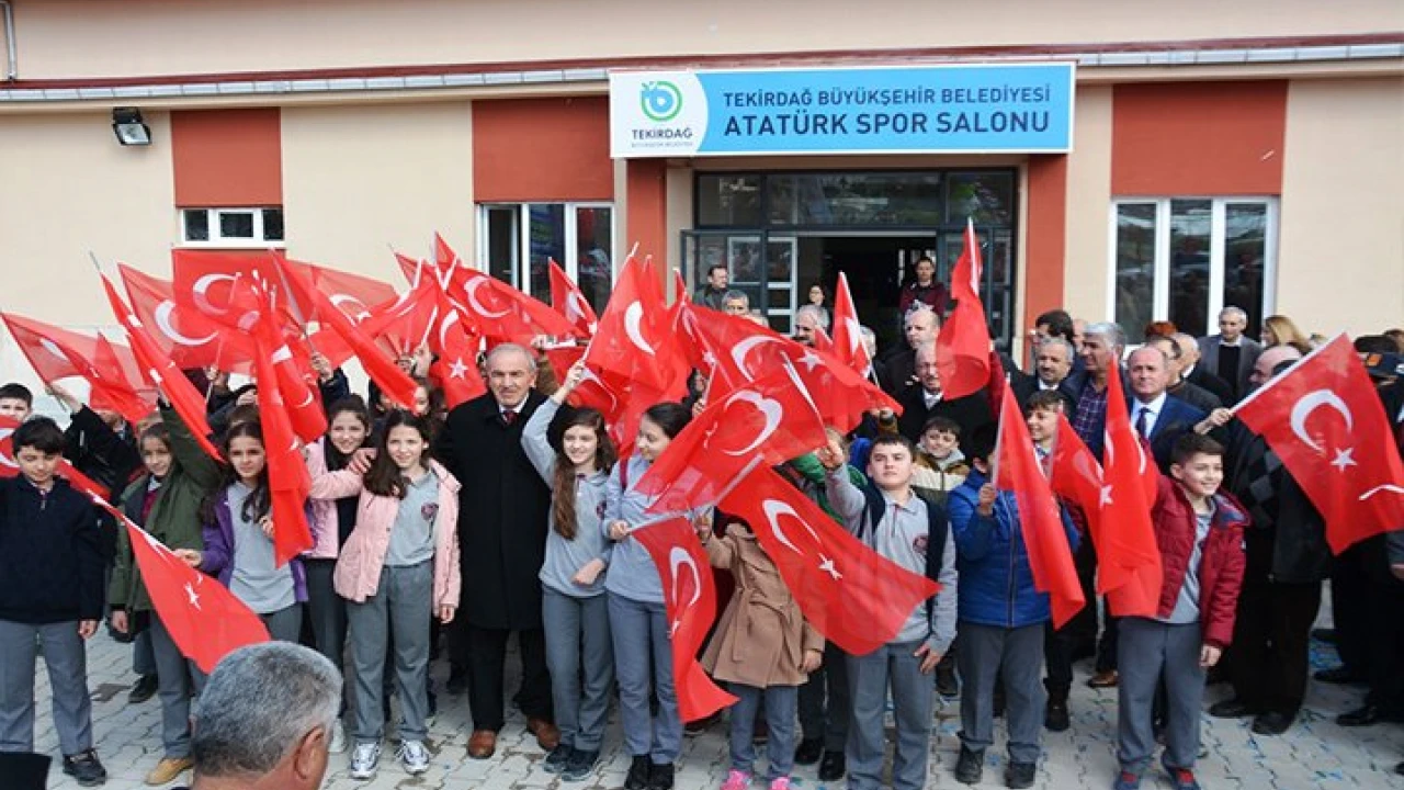 Tekirdağ Büyükşehir Belediyesi tarafından "11 İlçeye 11 Okul Projesi" kapsamında Hayrabolu ilçesinde Hasan Yılmaz Kurt Ortaokulunun bahçesine yapılan Atatürk Spor Salonu, törenle Tekirdağ Valiliğine teslim edildi.