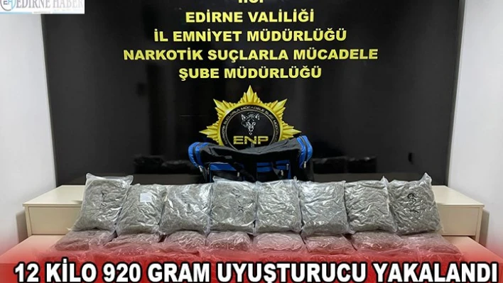 Edirne Emniyet Müdürlüğü Narkotik Suçlarla Mücadele Şube Müdürlüğü ekipleri, Bulgaristan'dan Türkiye'ye giriş yapan E.D'nin kullandığı IF12PYI plakalı tırda arama yaptı. Tırın çekici kısmında valiz içerisinde 24 şeffaf poşet içerisinde 12 kilo 920 gram esrar ele geçirildi.