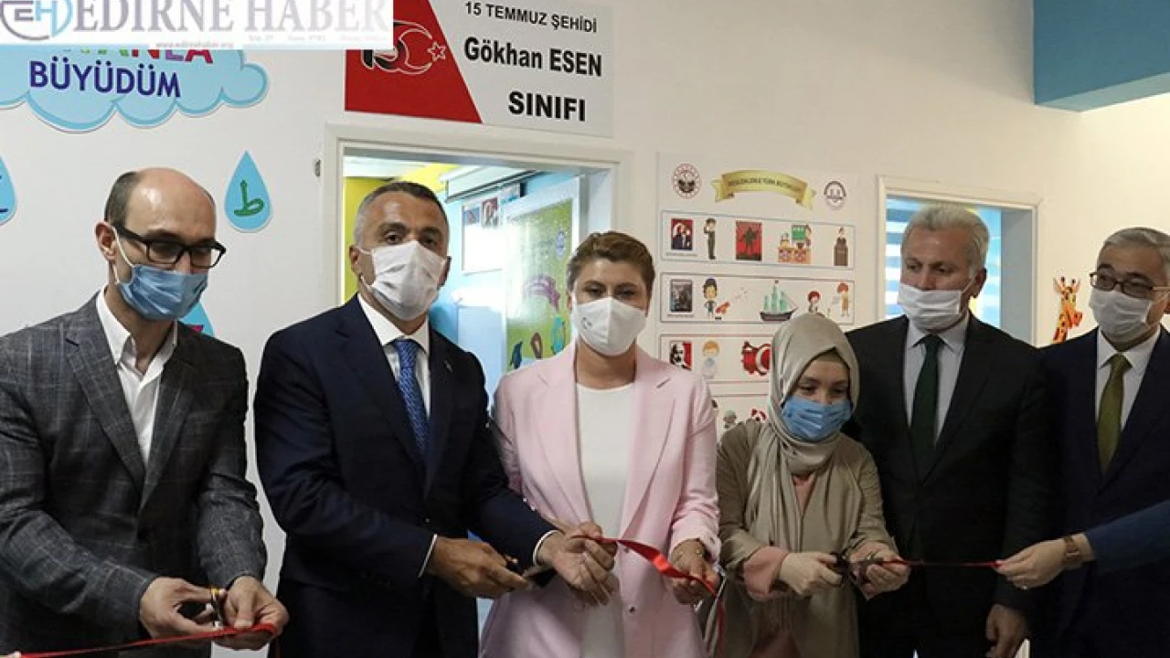 İl Müftülüğüne bağlı Sungurbey Eğitim Merkezi'nde düzenlenen törende Kırklareli Valisi Osman Bilgin, İl Müftüsü Aydın Yığman ile şehidin ağabeyi Okan Esen sınıfın açılış kurdelesini kesti.