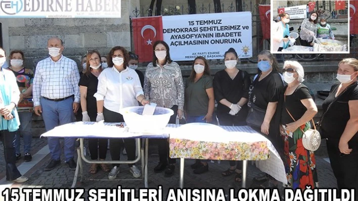 AK Parti Edirne İl Başkanlığı, tarafından 15 Temmuz şehitleri ile Ayasofya’nın ibadete açılmasının onuruna lokma döktürülüp vatandaşlara ikram edildi. Eski Camii önündeki lokma dağıtımına, AK Parti Edirne İl Başkanı Belgin İba, Merkez İlçe Başkanı Önder Özcan ve partililer katıldı.