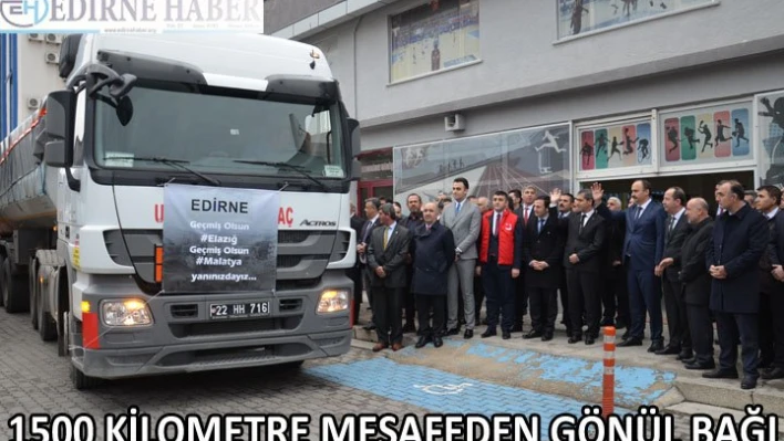 Edirne’nin sevgi yüklü TIR’ı Edirne Valisi Ekrem Canalp’in uğurlamasıyla Elazığ ve Malatya’ya doğru yola çıktı.