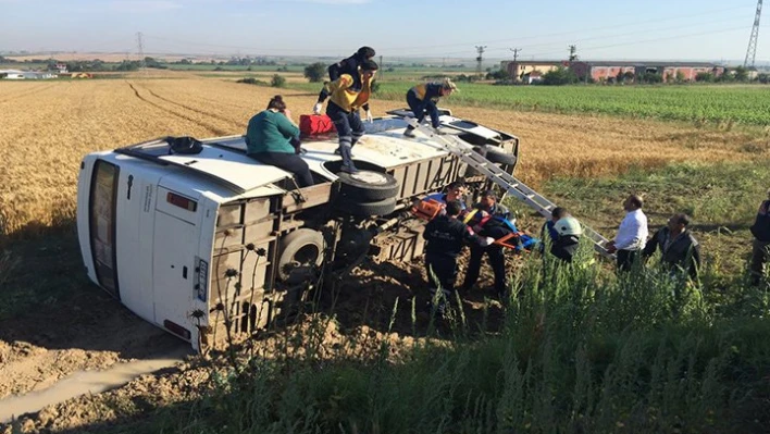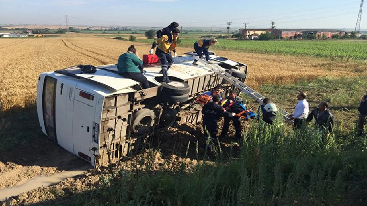 Ergene ilçesinde işçi servisinin devrilmesi sonucu 18 kişi hafif yaralandı.
