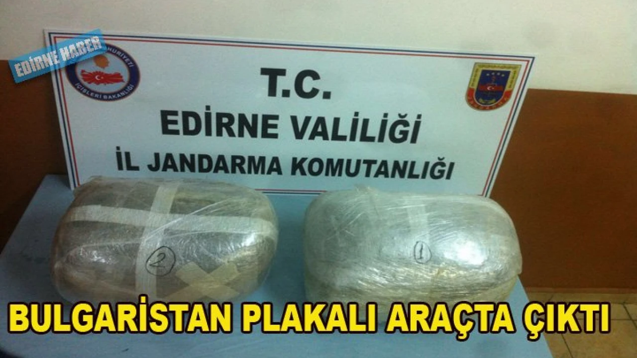 Edirne'de jandarmanın durdurduğu Bulgaristan plakalı otomobilde 20 kilo 90 gram esrar yakalandı, Bulgaristan vatandaşı ile uyuşturucuyu almaya geldiği iddia edilen kişi tutuklandı.