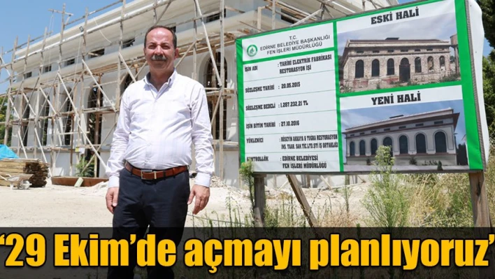 Edirne Belediye Başkanı Recep Gürkan, Eski Elektrik Fabrikası'nı 29 Ekim 2016 tarihinde açmayı planladıklarını belirtti.