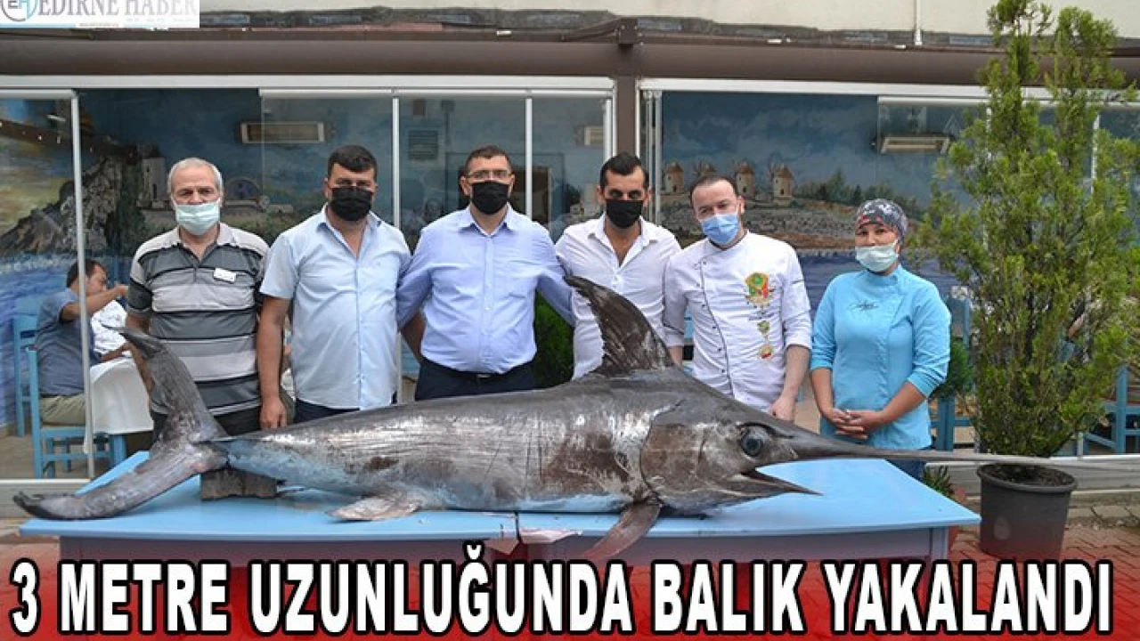 Edirne'de Saros Körfezi açıklarında yaklaşık 3 metre uzunluğunda kılıç balığı yakalandı.