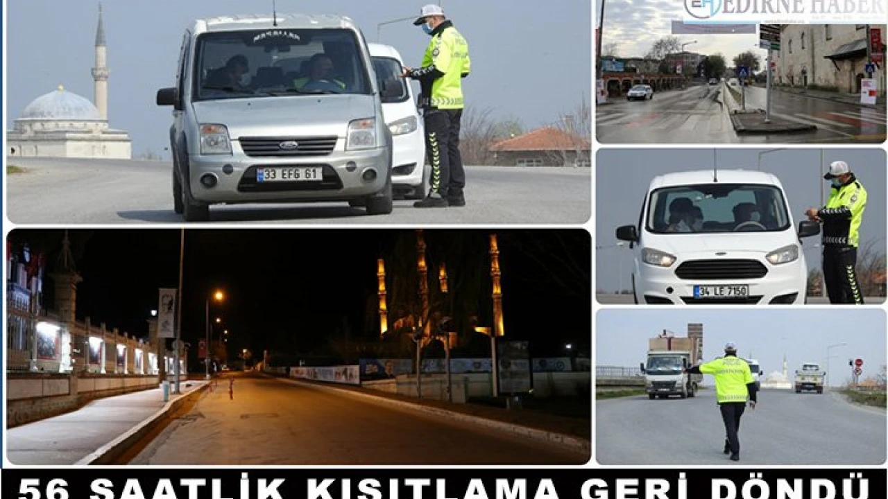 Kovid- 19 salgını ile mücadelede kontrollü normalleşme dönemi ile birlikte illerin risk durumlarına göre hafta sonu uygulanan sokağa çıkma kısıtlaması yeniden düzenlendi. Bu kapsamda kırmızı kategoride ve çok yüksek riskli iller arasında yer alan Edirne'de bu hafta sonu ilk kez 56 saatlik sokağa çıkma kısıtlaması uygulandı.