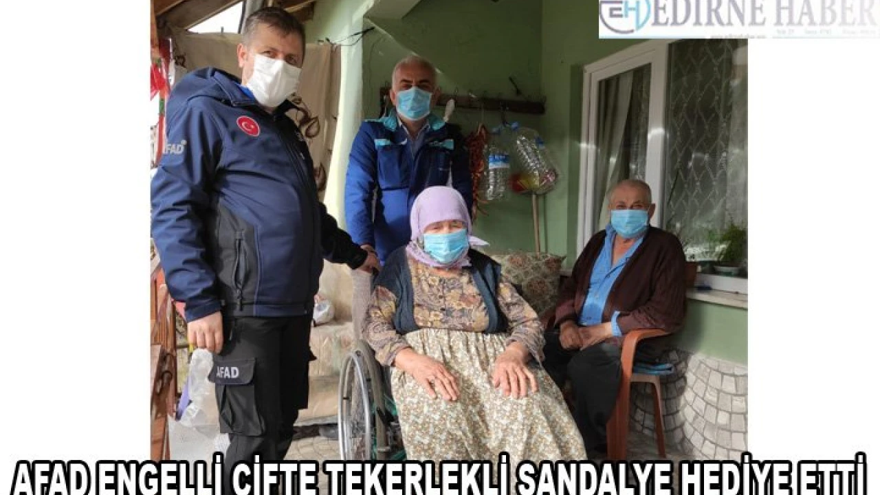 Edirne'de AFAD, köyde yaşayan engelli çifte tekerlekli sandalye hediye etti.