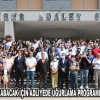 Hakimler, savcılar, avukatlar ve adliye çalışanları adliye önünde Karabacak'la buluştu.