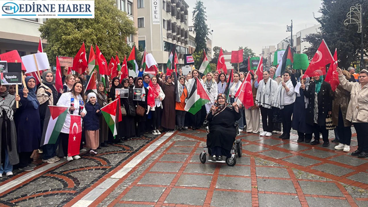 AK Parti Edirne Kadın Kolları tarafından yapılan açıklamada, kadınların vicdanı, duası ve sessizliğiyle Gazze’deki zulme karşı bir araya geldikleri vurgulandı. Açıklamada şu ifadeler yer aldı: