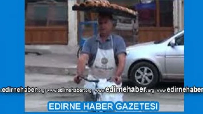 Kırklarelili simitçi Tahsin İnceoğlu'nun (58) bisiklet kullanırken başında taşıdığı simit tepsisini düşürmemek için harcadığı çaba görenleri şaşırtmaya yetiyor.