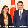 AK Parti MKYK Üyesi ve Edirne Milletvekili Fatma Aksal, Ulaştırma ve Altyapı Bakanı Mehmet Cahit Turhan ile Tarım ve Orman Bakanı Bekir Pakdemirli'yi ziyaret etti. Fatma Aksal, çok yakından ilgilendiği, Edirne'de devam eden karayolu, hızlı tren, Keşan Yayla Balıkçı Barınağı ve barajlara ilişkin yürütülen projeler konusunda Bakanlar ile bilgi alış verişinde bulundu.
