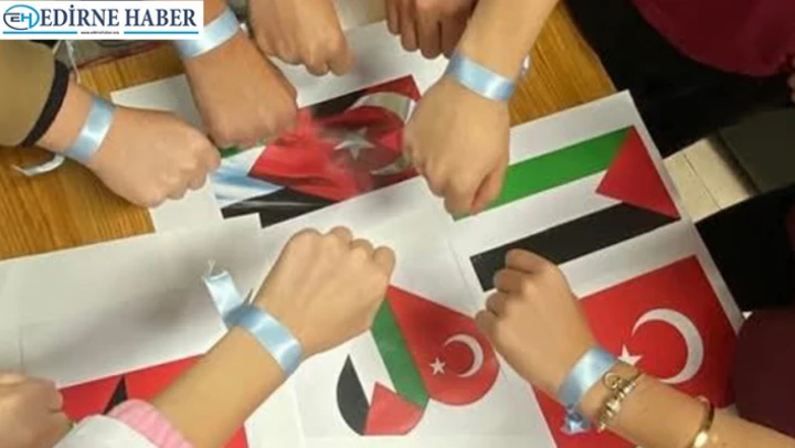 Edirne'de Milli Eğitim Bakanlığı koordinesinde yürütülen 'Filistin Farkındalık Etkinlikleri' kapsamında 1. Murat Anadolu Lisesi'nde gerçekleştirilen etkinlikte öğrenciler, öğretmenler ve okul idaresi bir araya gelerek Filistin ve Gazze'de yaşanan insani dram karşısında dayanışma mesajı verdi.
