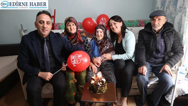 Edirne'nin Süloğlu ilçesinde 'Aile Yılı' kapsamında 100. yaşına giren kadının doğum günü kutlandı.