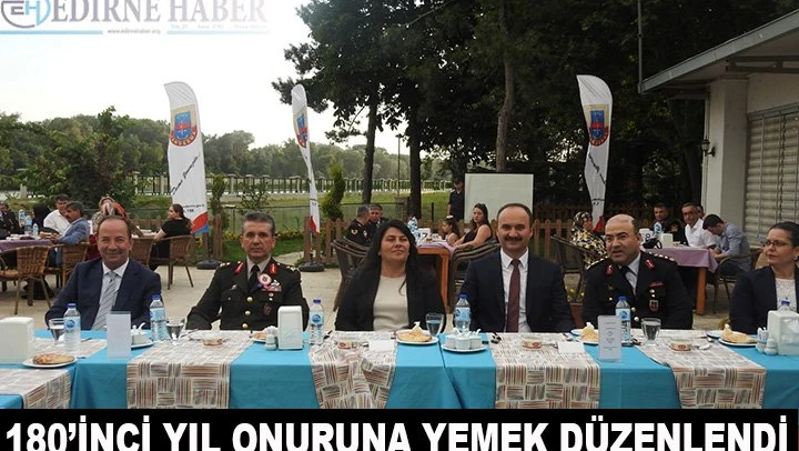Jandarma Genel Komutanlığının 180'inci kuruluş yıldönümü nedeniyle şehit, gaziler ve jandarma personelinin aileleri onuruna akşam yemeği düzenlendi.İl Jandarma Komutanı Albay Alpaslan Doğan 'jandarmayı anlatmam istense ilk söyleyeceğim sözler önce vatan sonra ise feragat, disiplin, dürüstlük, vazife ve şeref olacaktır'dedi.