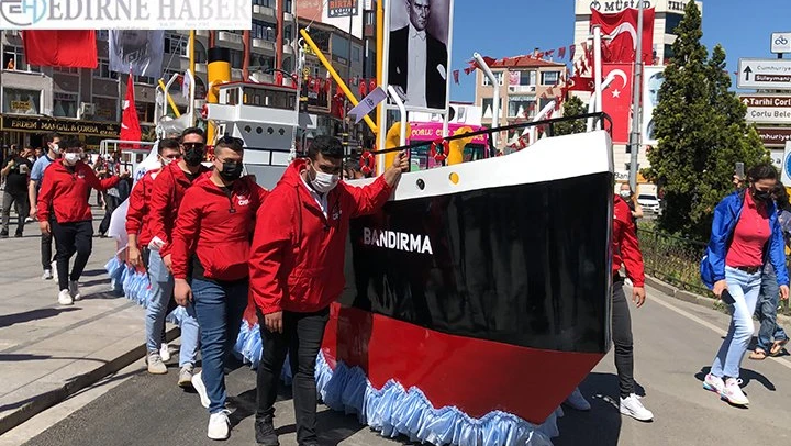 Çorlu Belediyesi tarafından hazırlanan temsili Bandırma Vapuru'nun Samsun'a doğru yola çıkmasının canlandırılmasının ardından tören sona erdi.