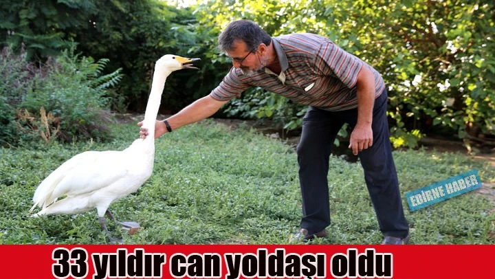 Edirneli hayvansever Recep Mirzan, 33 yıl önce yaralı halde bulduğu ve tedavi ettirdiği kuğuyu yanından ayırmıyor