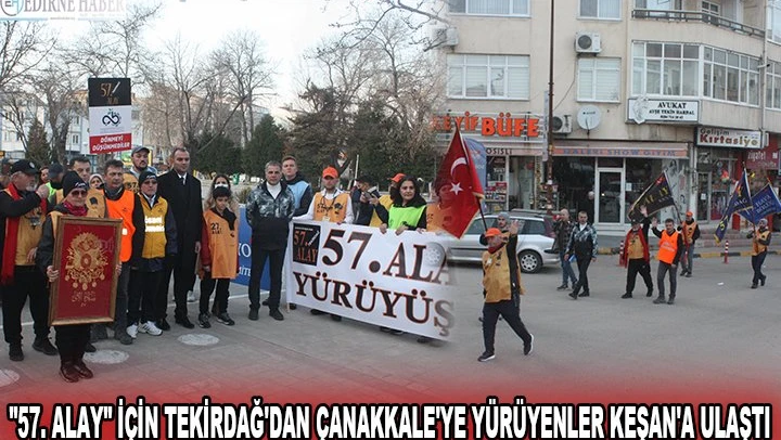 Çanakkale Savaşları'nda gösterdikleri kahramanlıkla destanlaşan "57. Alay" için Tekirdağ'dan Çanakkale'ye yürüyen 57 gönüllü, Edirne'nin Keşan ilçesine geldi.