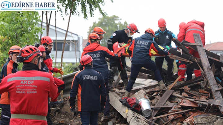Edirne'de 6,2 büyüklüğünde deprem senaryosuyla enkaz altında kalan düzensiz göçmenleri kurtarma tatbikatı gerçekleştirildi.