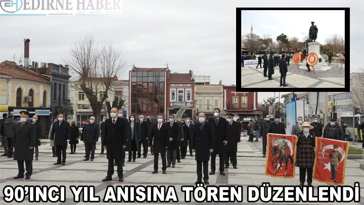 Ulu Önder Mustafa Kemal Atatürk'ün 21 Aralık 1930 tarihinde Cumhurbaşkanı sıfatıyla Edirne'ye gelişinin 90'ıncı yılı nedeniyle Atatürk Anıtı önünde anma töreni düzenlendi.