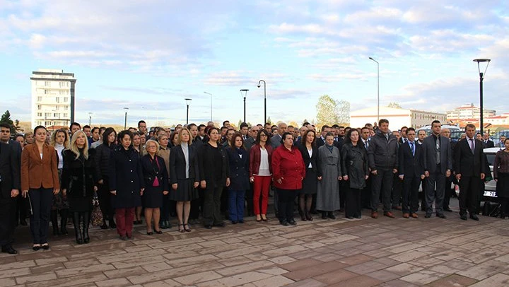 Edirne Adliyesi önünde toplanan hakim, savcı ve adliye çalışanları Büyük Önder'in hayata gözlerini yumduğu saat 09.05'te saygı duruşunda bulundu. Anma töreninde İstiklal Marşı okunarak bayrak yarıya indirildi.