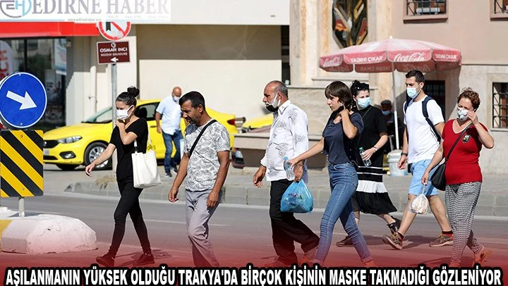 Aşılama oranının yüksek olduğu Trakya'da maske kuralına Edirne'de nispeten uyulduğu, Kırklareli ve Tekirdağ'da ise çok fazla uyulmadığı gözlendi.