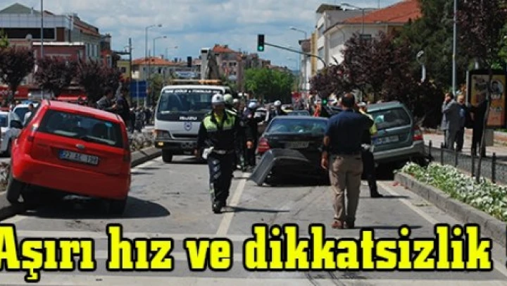 Alınan bilgiye göre, A.K'nin kullandığı 34 UD 14 91 plakalı otomobil, Ziraaat Bankası Kavşağı'nda kırmızı ışıkta bekleyen Oğuz Büyüker idaresindeki Bulgaristan plakalı otomobile, bu otomobil ise Mehmet Berksu Öykü'nün kullandığı 22 AE 198 plakalı otomobile çarptı. Çarpmanın etkisiyle savrulan araçlar, ışıkta bekleyen 3 otomobile daha çarparak durabildi. Kazada yaralanan A.K, sağlık ekiplerince Edirne Devlet Hastanesine götürüldü.