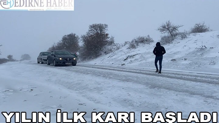 Edirne'de Balkan sınırına yakın yerleşim alanlarında kar yağışı başladı.