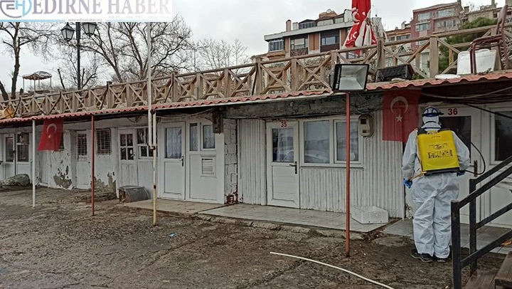 Tekirdağ balıkçı barınağı ve balıkçı tekneleri koronavirüs tedbirleri kapsamında ilaçlandı.
