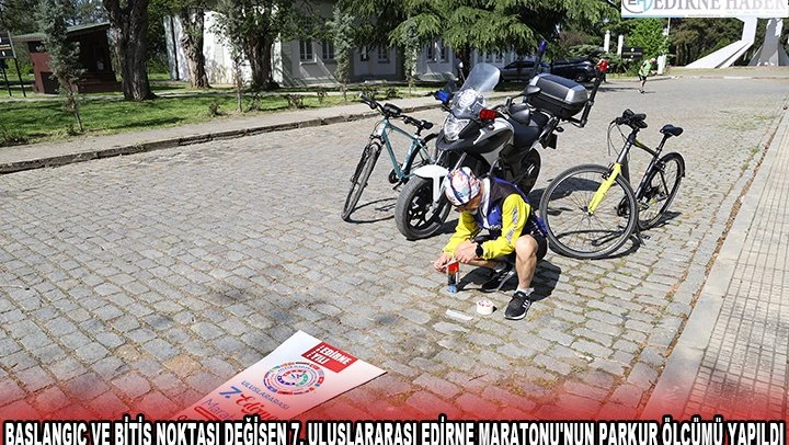 Edirne'de başlangıç ve bitiş noktası değişen 7. Uluslararası Edirne Maratonu'nun parkur ölçümü gerçekleştirildi.