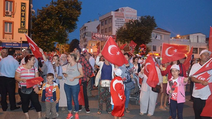 Vatandaşlar Fener Meydanından çarşı merkezine kadar milli birlik ve demokrasi yürüyüşü gerçekleştirdi.