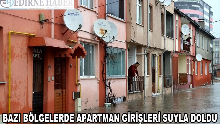 Edirne'de şiddetli sağanak nedeniyle bazı bölgelerde apartman girişleri ve yolları su bastı, bazı araçlar yolda kaldı.Â