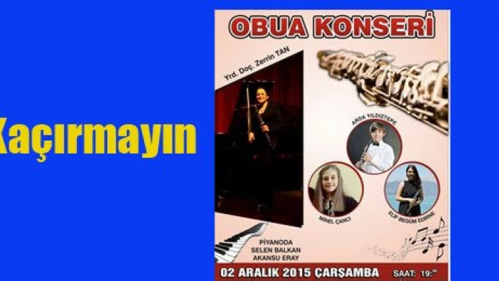 Obua konserinde sanatçılara ayrıca Selen Balkan ve Akansu Eray'da Piyanoda eşlik edecekler. Edirne'de bir ilk'in yaşanacağı bu anlamlı konsere bütün sanatseverler davet edildi.