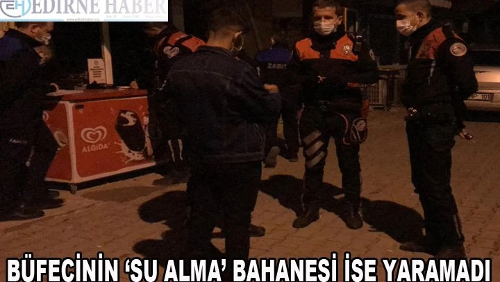 Büfeye gelen zabıta ekipleri işletme sahibine kısıtlama saatinde iş yerini açmaktan, Edirne İl Emniyet Müdürlüğü ekipleri ise kısıtlamayı ihlal ve maske takmamak suçundan cezai işlem uyguladı.