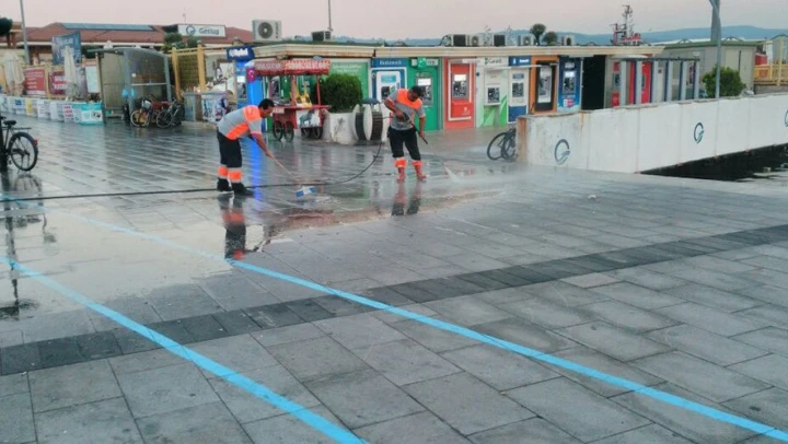 Öte yandan, Çanakkale Belediyesi Temizlik İşleri Müdürlüğüne bağlı ekipler de İskele Meydanı'nda kapsamlı temizlik çalışması yaptı.