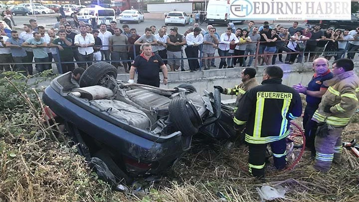 Yolun sağ şeridindeki kaldırıma çıkan otomobil daha sonra trafik yönlendirme direğine çarpıp ters döndü.