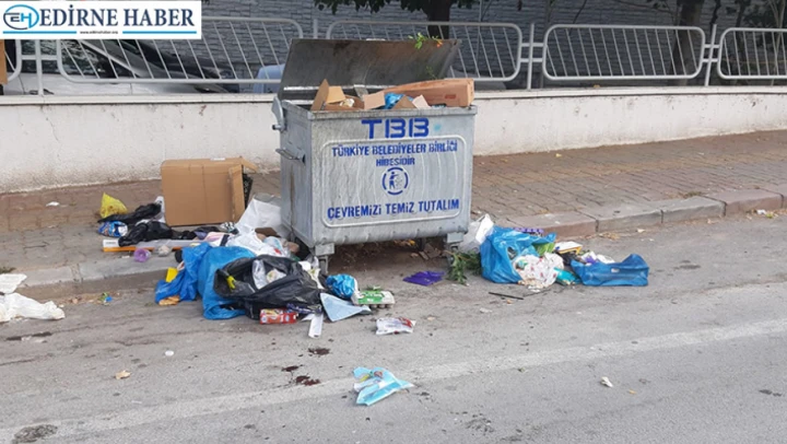 Edirne'nin Şükrüpaşa Mahallesi Şehit Üsteğmen Efkan Yıldırım Caddesi'nde bulunan çöp konteynerinin yanında biriken çöpler, mahalle sakinlerinin tepkisine neden oldu.