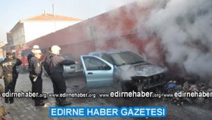 Kovacılar Cami Sokak'ta park halinde bulunan N.K.'ya ait 22 NE 434 plakalı araç, çöp kovasından sıçrayan kıvılcım ile yandı.