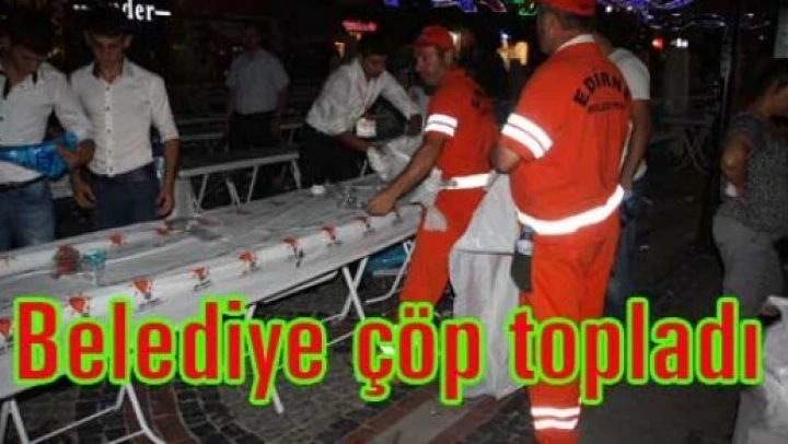 Günlerdir sorun olan ve Edirne Belediyesinin izin vermediği Ak Partinin saraçlar iftarından sonra çöpler Edirne Belediyesi Temizlik İşleri elemanları tarafından toplandı. Ak Parti Gençlik Kolları üyeleri ile birlikte temizlik çalışmalarına katılan Belediye Temizlik İşleri personeli yaklaşık 6000 kişinin çöpünü temizledi.