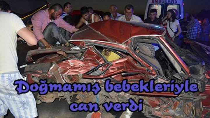 Keşan-Gelibolu karayolunda iki otomobilin çarpıştığı kazada, 7 aylık ikiz bebeklere hamile olan 37 yaşındaki Gönül Şahin hayatını kaybederken, 14 aylık bebek ve 3'ü çocuk olmak üzere 7 kişi yaralandı.