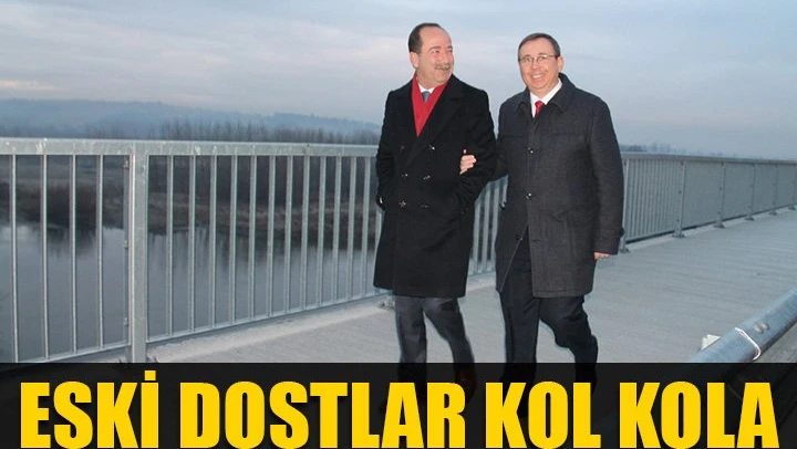 Bakan Müezzinoğlu'nun köprü ziyaretinde kolkola giren ve başarı öyküsü fotoğrafı sergileyen Başkan Gürkan ve Rektör Tabakoğlu, görevleri dışında, dostlukların eskimeyeceğini de göstermiş oldu.