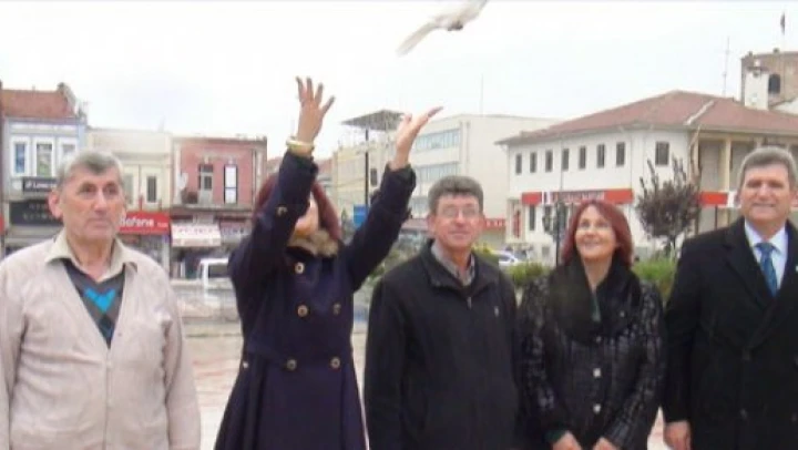 Saygı duruşundan sonra İl Başkanı Ayşe Ergen, barış güvercini uçurdu.