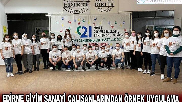Sosyal konularda duyarlılık gösteren Edirne Giyim Sanayi çalışanları, 21 Mart Down Sendromu farkındalık günü ile ilgili yine örnek bir uygulamaya imza attı.
