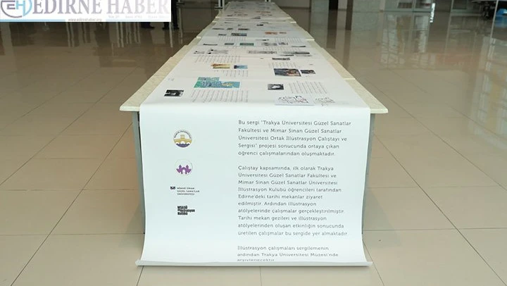 Trakya Üniversitesi Güzel Sanatlar Fakültesi ve Türkiye'deki ilk illüstrasyon kulübüne sahip Mimar Sinan Güzel Sanatlar Üniversitesi iş birliğiyle hayata geçirilen projede sergilenen başta Selimiye Camii, Meriç Köprüsü, Sultan II. Bayezid Külliyesi, Edirne Sarayı ve Tarihi Tren Garı Binası olmak üzere mimari açıdan örnek eserleri ile Kırkpınar pehlivanları, lokomotif, Edirne sümbülü, Edirne kırmızısı ve ters lale motifi gibi Edirne'nin sembolü niteliğinde değerleri, söz konusu değişiklik ile Trakya Üniversitesi Balkan Kongre Merkezi'nde sanat ve kültür meraklılarıyla buluşacak.