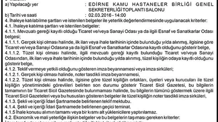 Haberler İlanlar Edirne Kamu Hastaneler Birliği Edirne Kamu Hastaneler Birliği Sağlık Bakanlığı Türkiye Kamu Hastaneleri Kurumu PAYLAŞ 16.02.2016 08:00 Güncelleme: 16.02.2016 08:00 TAKİP ET