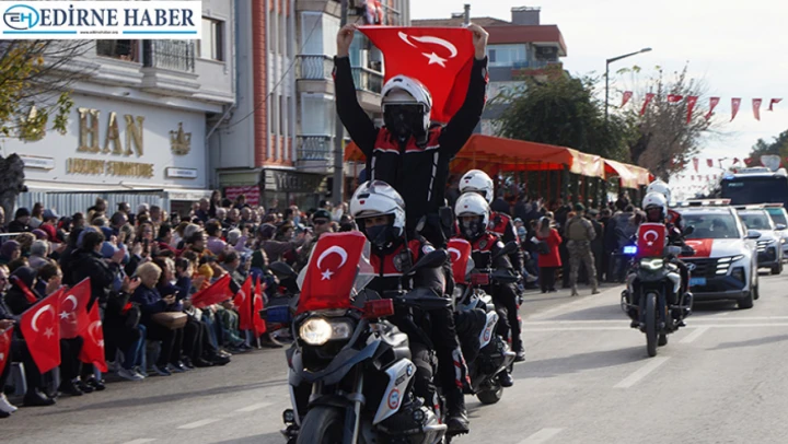 Edirne'nin düşman işgalinden kurtuluşunun 103'ncü yıl dönümü düzenlenen törenlerle kutlandı. İlk olarak Atatürk Anıtı önünde başlayan kutlamalar, daha sonra Atatürk Bulvarı'nda devam etti. Kortej geçişi sırasında renkli görüntüler oluşurken, Jandarma Komutanlığı ekipleri, kortejde şehitleri andı. Geçit töreni büyük alkış topladı.