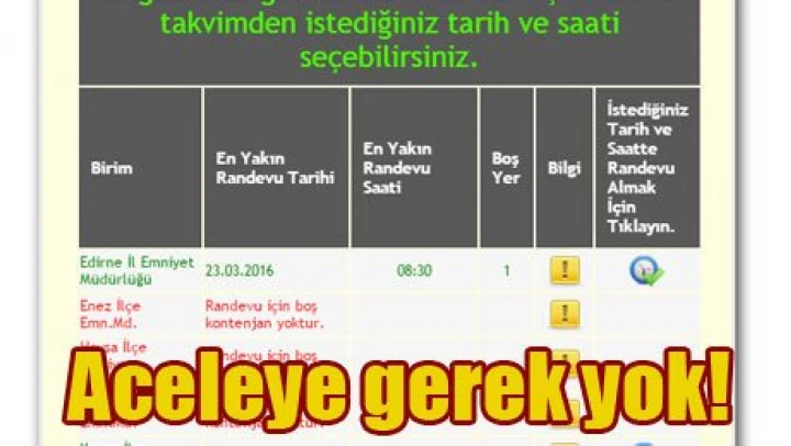 Ehliyetlerini değiştirmek ve Uluslararasına uygu hale getirmek isteyen Edirneliler hayal kırıklığı yaşıyor. Yenilemelerin internet üzerinden alınacak olan randevu ile olduğunu belirten yetkililer, aşırı bir yoğunluk olması nedeni ile Mart ayı sonuna randevu verildiğini söylediler.