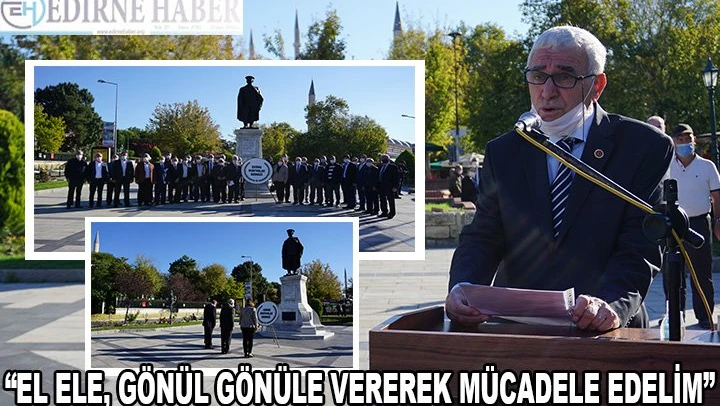 'Muhtarlar Günü' nedeniyle Atatürk Anıtı'nda çelenk töreni düzenlendi. Törende konuşma yapan Edirne Muhtarlar Derneği Başkanı İrfan Tasmalı, 'Yeter ki milli birliğimizi koruyalım el ele gönül gönüle verelim. Köylerimize, mahallelerimize, yörelerimize hayır işler yapmak için mücadele edelim.' dedi.