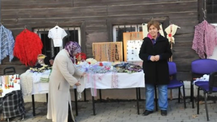 Edirne kadın meclisindeki kadınlar, yaptıkları el emeği göz nuru el işlerini, Bostanpazarı'ndaki İl Kadın Meclisi binası önünde kurdukları tezgahlarda satışa çıkardılar.