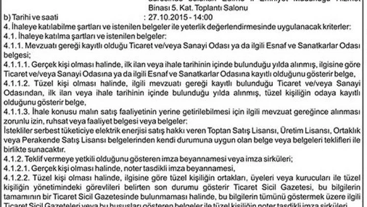 Haberler İlanlar ELEKTRİK ENERJİSİ SATIN ALINACAKTIR ELEKTRİK ENERJİSİ SATIN ALINACAKTIR EDİRNE İL EMNİYET MÜDÜRLÜĞÜ İÇİŞLERİ BAKANLIĞI EMNİYET GENEL MÜDÜRLÜĞÜ PAYLAŞ 01.10.2015 08:00 Güncelleme: 01.10.2015 08:00 TAKİP ET